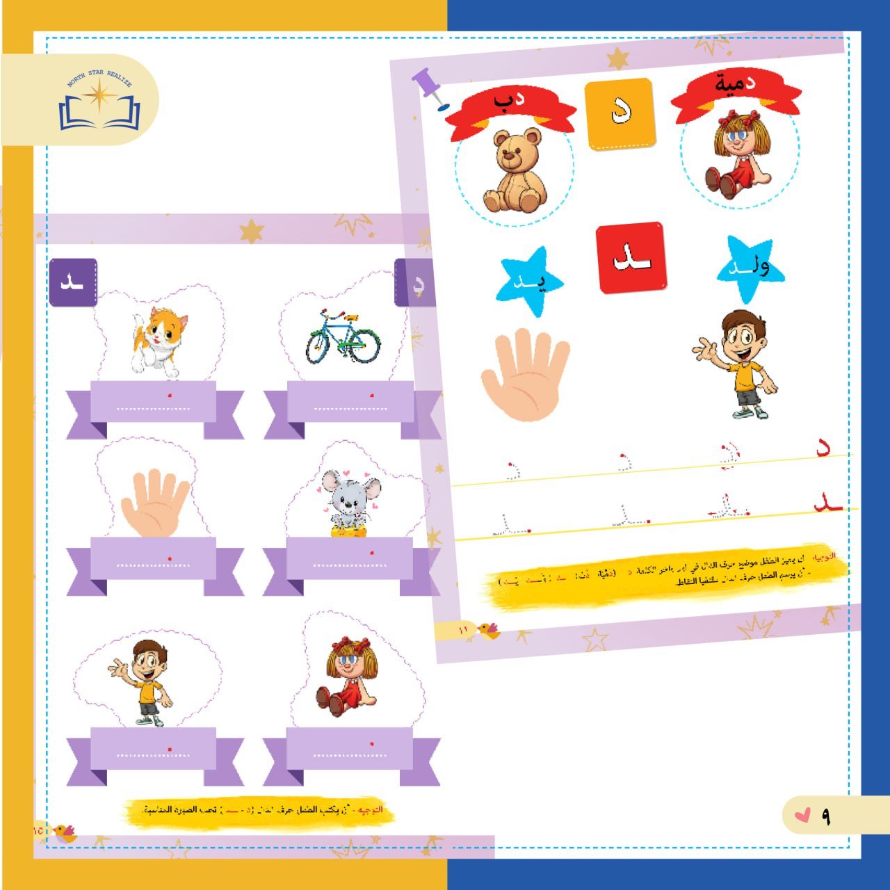 يتألف المستوى الأول من جزئين. يهدف البرنامج إلى تعليم لفظ الحرف بطريقة صحيحة ، وتعليم رسم شكل الحرف في أول وآخر الكلمة. ويتضمن البرنامج عدد كبير من الأنشطة التي تتنوع ما بين التلوين والكتابة والتوصيل. ويتميز بإضافة جمل مصورة وأناشيد هادفة وتعلم المفردات الجديدة بأسلوب ممتع من خلال التلوين. وقد تضمن الموقع الإلكتروني أنشطة وأوراق عمل إضافية متنوعة واختبارات إلكترونية لتقييم مستوى الطفل.